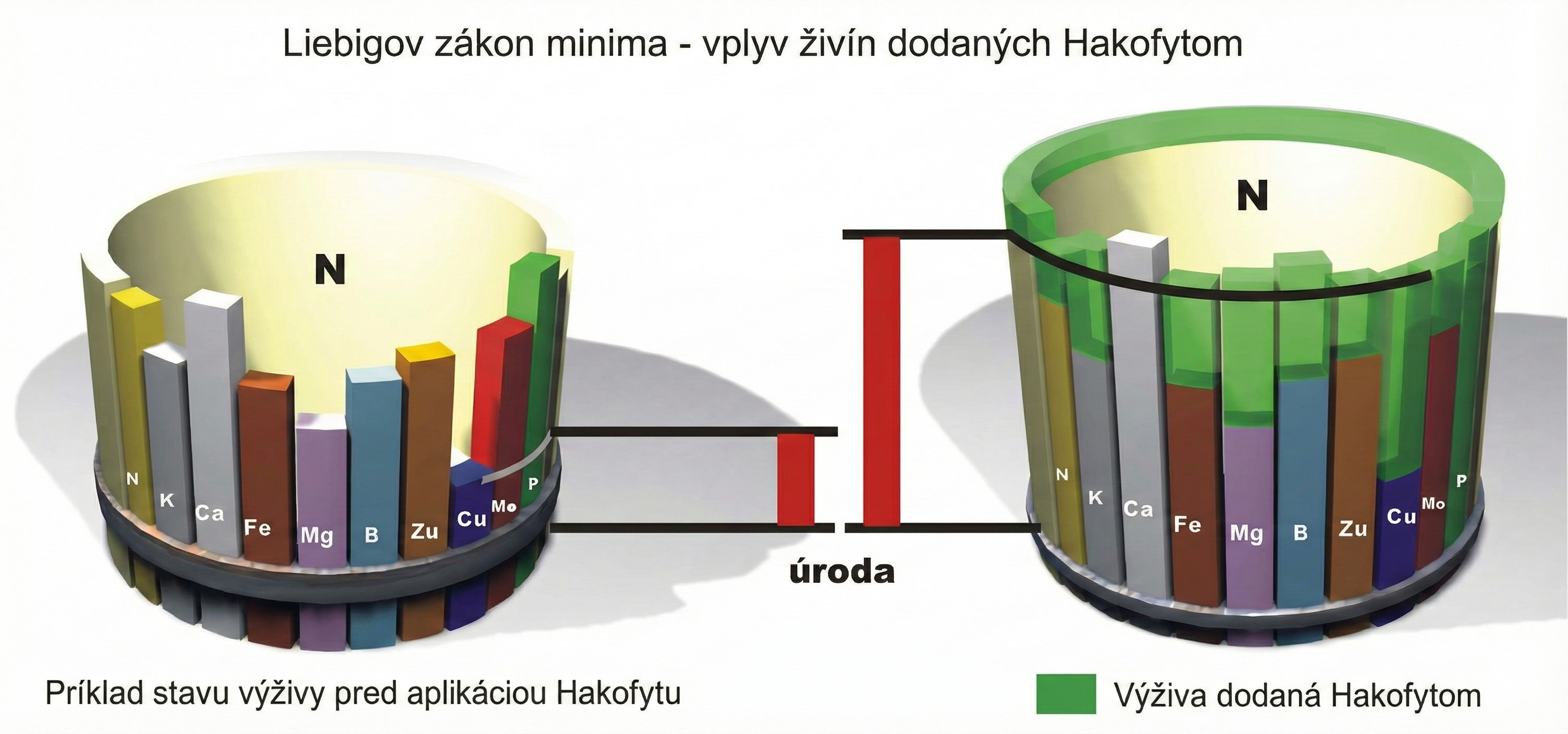 Účinok hnojív Hakofyt je založený na využití jedného zo základných princípov výživy, známeho ako Liebigov zákon minima . Jeho podstatou je, že aj keď rastlina môže mať väčšinu živín v nadbytku, jej rast bude obmedzený konkrétnou zložkou, ktorej je nedostatok.